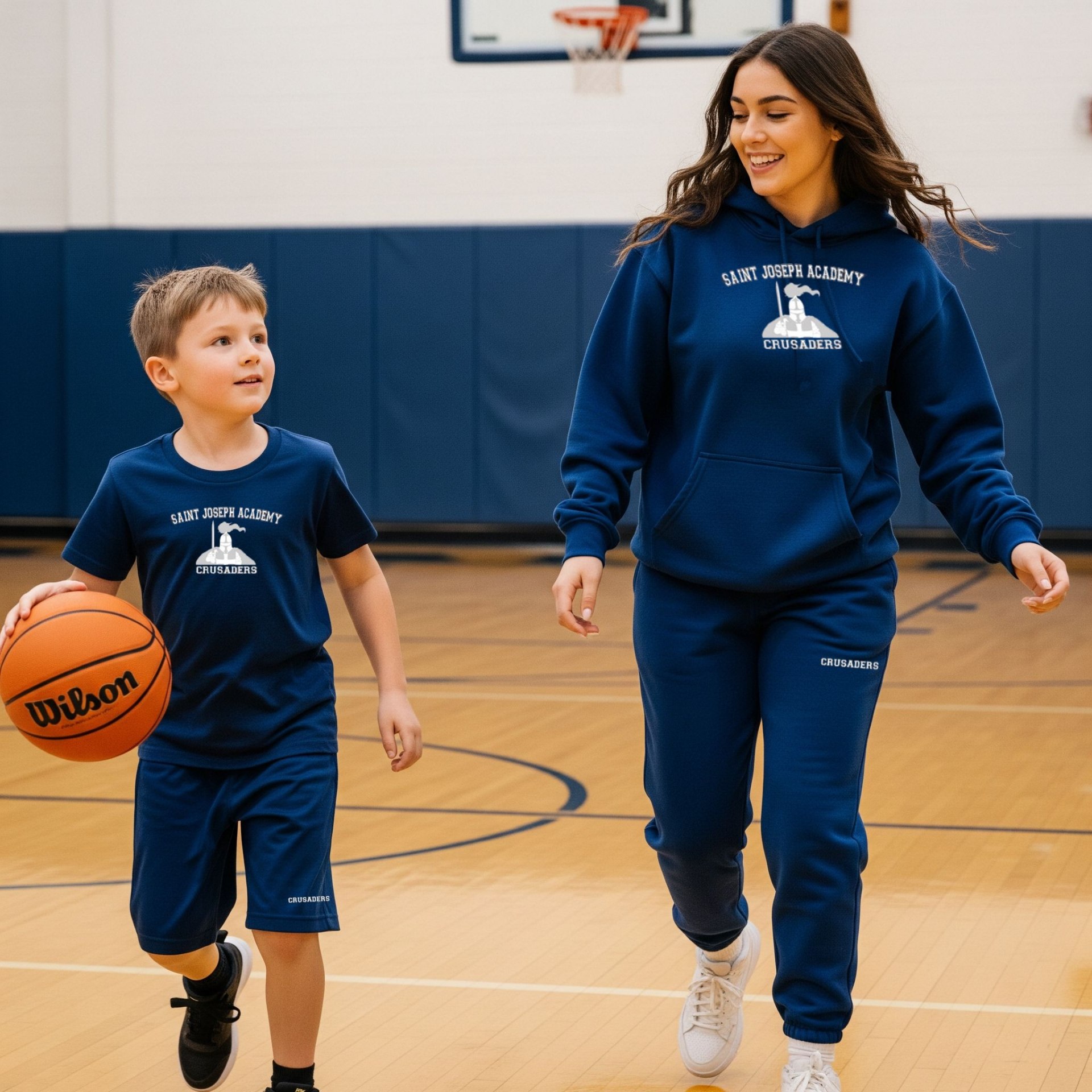 Your school's Physical Education Uniforms Virtual Closet. Just choose your sizes for Sweatshirt, Sweatpant, T-Shirt and/or Gym Short and order them together.